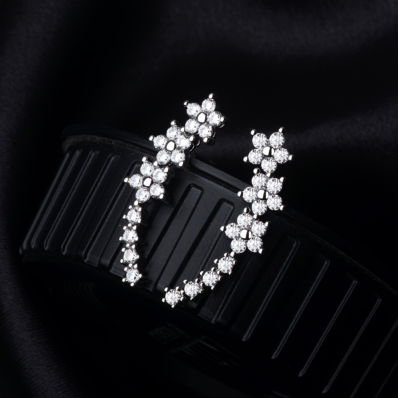 A Pair of Elegant And Luxurious Flower-Shaped Earrings Adorned with Rhinestones,