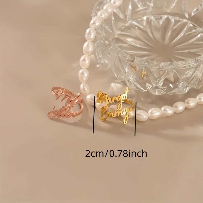 Personalized Stainless Steel Rings with 1-2 Names, Double-Layer Name Open Rings,